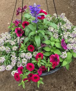 We create over 1200 hanging baskets each year. They range from full sun to full shade baskets.