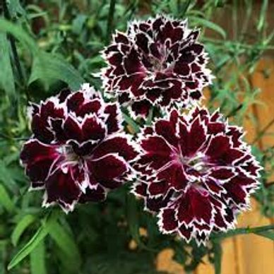 These hardy perennials are a relative to the carnation. Fragrant double blooms appear in spring or early summer. Grows well in full sun or part shade. 12" tall and 14" wide. Constant Beauty Pink,Cadence Salmon and Velvet 'n Lace (pictured) are available.