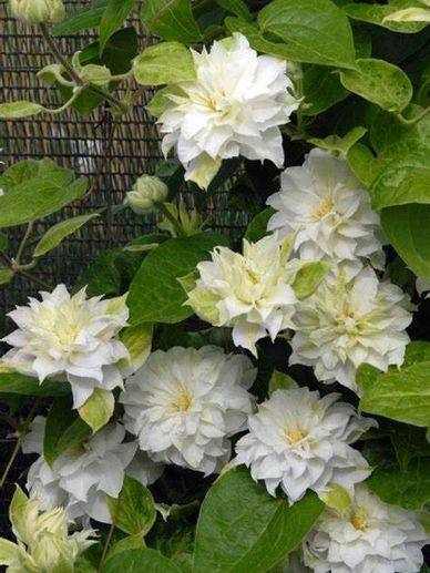 Clematis is one of the best perennial vines for your garden. These plants dress up any kind of structure they climb with their flowers that come in an array of shapes and colors. Duchess of Edinburgh (pictured), Jackmanii, Ernest Markham, Madame Edouard Andre, and Nelly Moser are all available.