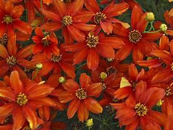 Crazy Cayenne (pictured) is a thread-leaf tickseed which grows in a domed, rounded, uniform habit. Sunfire has golden flowers with large, maroon centers on sturdy stems that are good for cutting. Double the Sun has big golden yellow semi double flowers that appear earlier than most Coreopsis. Also available Big Bang Mercury Rising, Big Bang Star Cluster, Golden Sphere, Jethro Tull, Sunfire, and Zagreb.