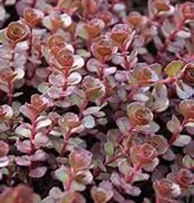 Red carpet (pictured) provides a rich display of bronze and green leaves in the summer buts turns a bright red in the fall and winter. It makes a nice weed barrier/groundcover when planted en masse. Sunsparkler Lime Zinger and creeping sieboldii are available. The tall Autumn Joy sedum is also available